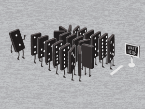 My apologies. In addition to having non-stinky gas, I am a Woot! addict. More specifically, I am a Shirt.Woot! addict. Had I not given up Facebook and Twitter, I would be sharing today’s shirt with my social network world. Alas, as Lent continues, so does my abstinence from Facebook and Twitter. Still, the need to share is too strong to push aside. So, here it is my beloved blog beauties. Shirt.Woot’s shirt of the day (3.22.11) is titled “The Domino Effect”, with a curvy line of dominoes set up and ready to tumble with just one touch. I love this shirt. More than likely, I will add this shirt to my collection of Woot! shirts. Feel free to access the Shirt.Woot link on the sidebar (=====>) and buy a shirt for yourself, too!