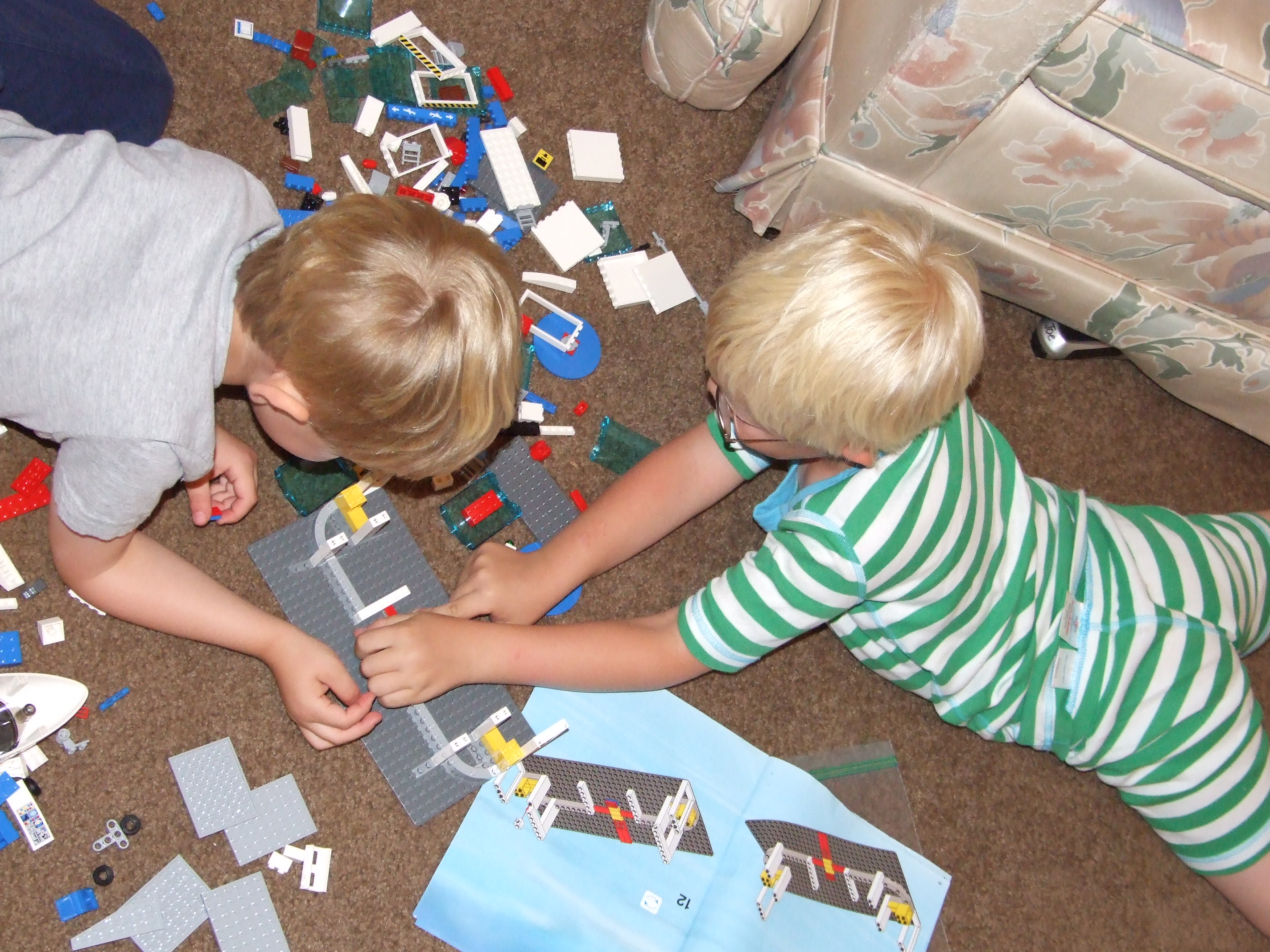 1. Right now the boys are keeping the Legos contained in one area at a time. With two large dogs in the house, the boys know the Legos will disappear if left unprotected.