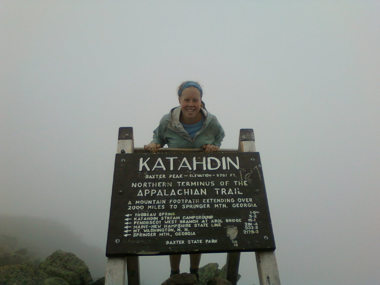Five months later, Wednesday July 27th, she and her Dad made their climb up Mt. Katahdin. Hiking through the rain, wind and fog, Adventure Girl reached the summit – both the summit of Mt. Katahdin and the summit of her journey.