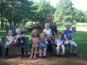Ms. Suzann, her Dad (Grandpa Bob) and the kids. (Joe is in the green shirt, Charlie is the baby in yellow.)