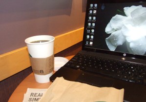See, this morning I needed to drop my youngest off at school – another day of kindergarten orientation. We live 15 miles from the school, and orientation is from 9am until 11am. Rather than drive an extra 30 miles, I decided to take advantage of free wifi offered at a coffeehouse located near the school.