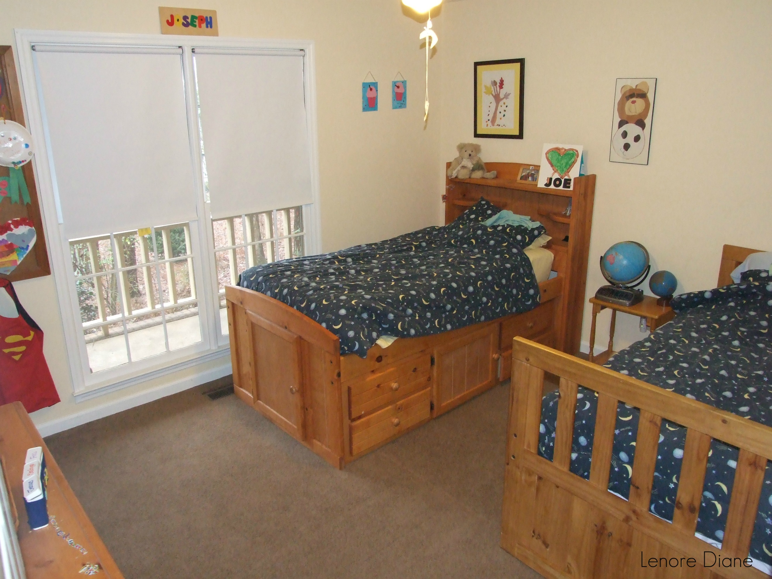 We called the boys to the table to let them know what was happening. The news of having to share a room was very well received. In fact, the news of keeping the new ‘playroom’ clean was well received, too. Joe and Charlie agreed to clean the room twice a month on Fridays. This Friday is their first day on the job. The job is huge.