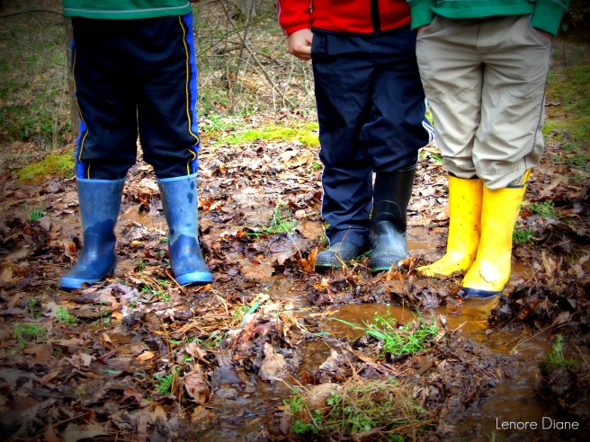 Nothing like a good stomp in the mud on a Saturday morning. That is, of course, if you are my boys and their friend.