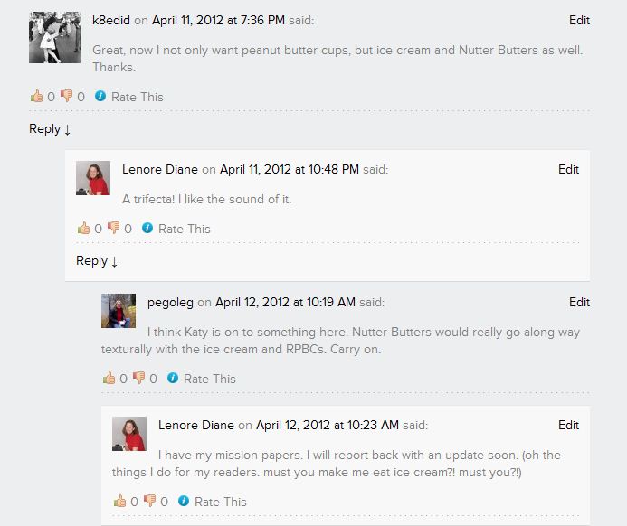 Within the comments under my Reese’s post, K8, Peg and I had the following dialogue: