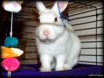 Georgette put the bug in my ear, so my pictures today are in honor of her. She noted Jojo’s white fur and red eyes, mentioning a bit of blue would make him a patriotic rabbit. Though I did not find the best ribbon, I did what I could to have her idea come to fruition. The fact that Jojo would not emerge from his cage told me he was not amused.