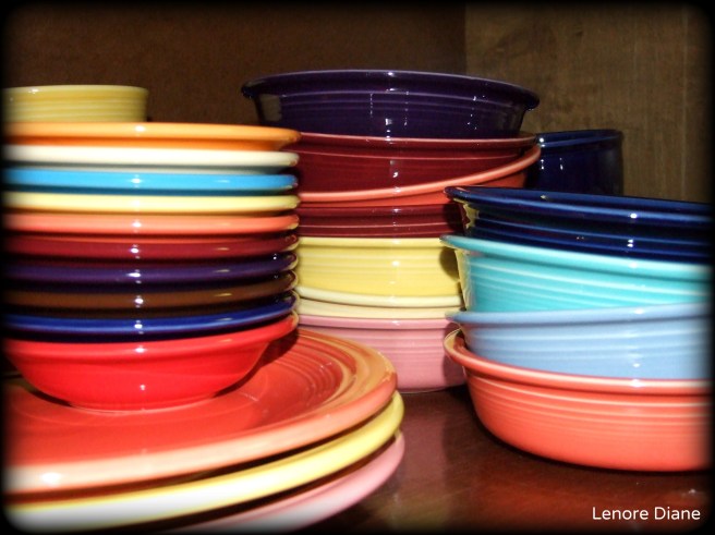 As a child spending my summers at Amherst Shore, I remember eating meals on brightly colored plates and in brightly colored bowls. When I moved out on my own and had to invest in my own plates, bowls, etc., I bought a small set of the same stuff we used at the Shore. And when Rob and I were married, I seized the opportunity to register for more of the colorful collection.