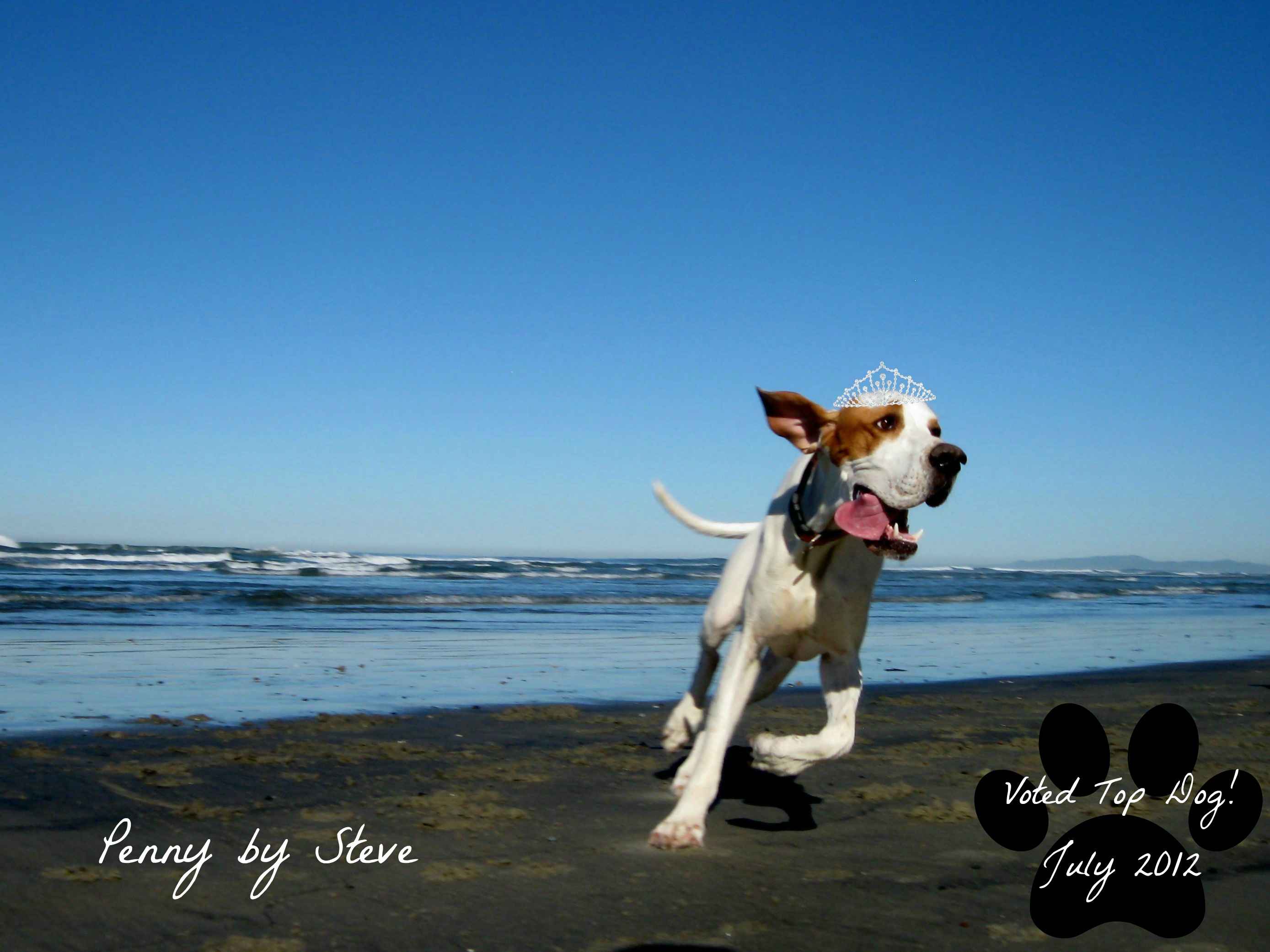 Without further ado, please give a round of applause to Penny. Penny was voted Top Dog. And yes, that is a tiara on her head.