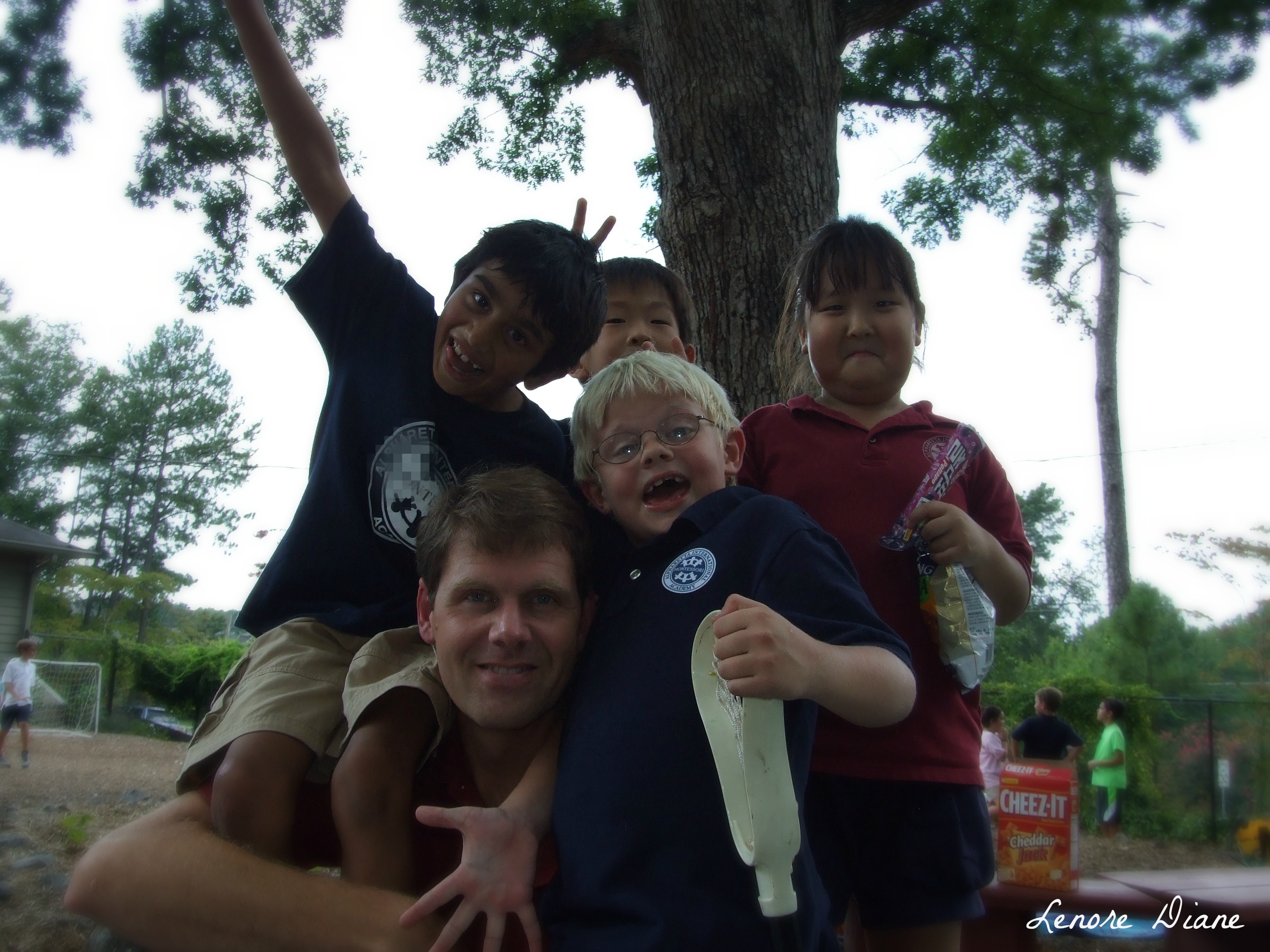 Friday was “Picnic Day” at the boys’ school. And, just as he is at home, Rob was a kid magnet. For the record, I was busy chatting with friends. Joe and his friends were shouting at me to take this picture.