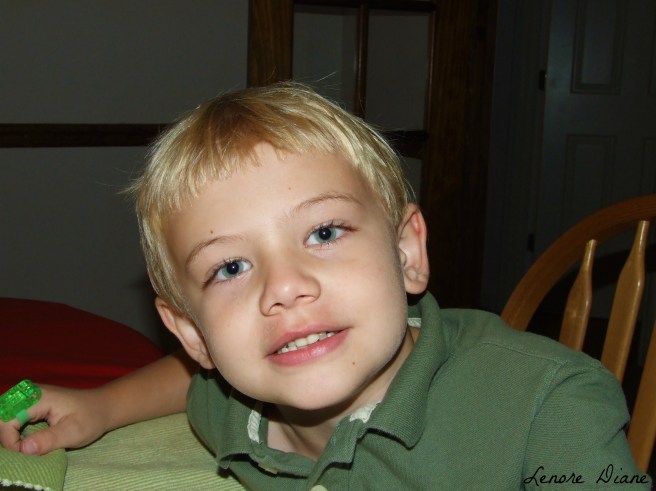 The ring is a little flashlight, Priya. He got it at school. I appreciate you taking in all the greens. It was the color green that inspired the picture. Earlier today he was in the same spot, only this time he is covered in red. I’ll share that picture soon.