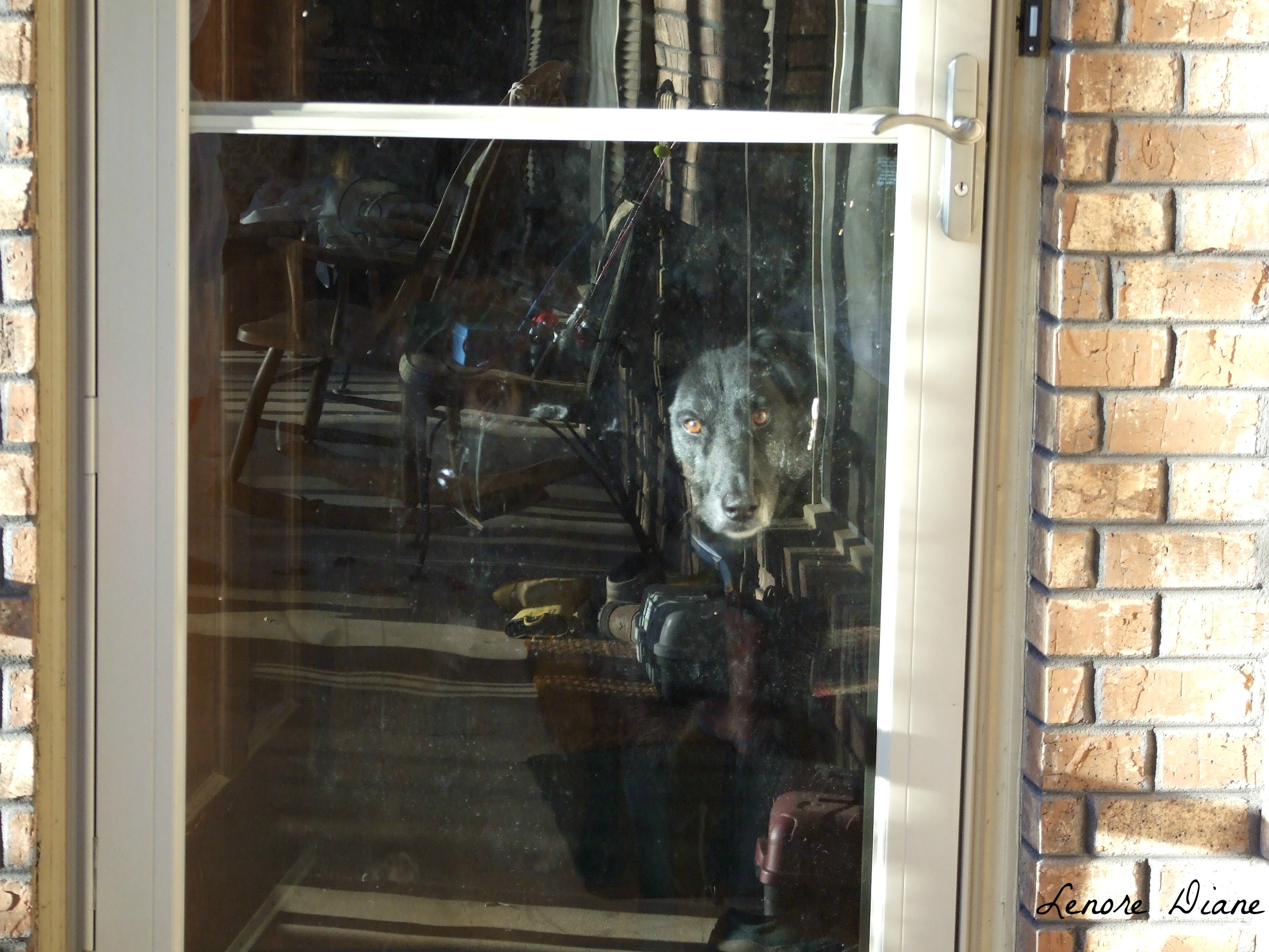 I was also trying to figure out if he was inside or reflected there. Waiting for you with those big eyes.