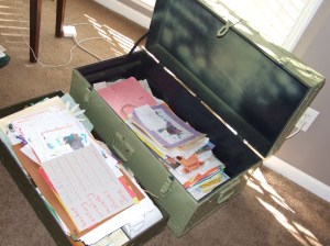 Going through the trunk, bins and crates felt good. I collected quite a large quantity of paper for our recycling bin, too. Perhaps next week, I’ll tackle the closet downstairs. Blogary, let’s see if I am all talk, or if I am prepared to let go of what will certainly be memorable treasures.