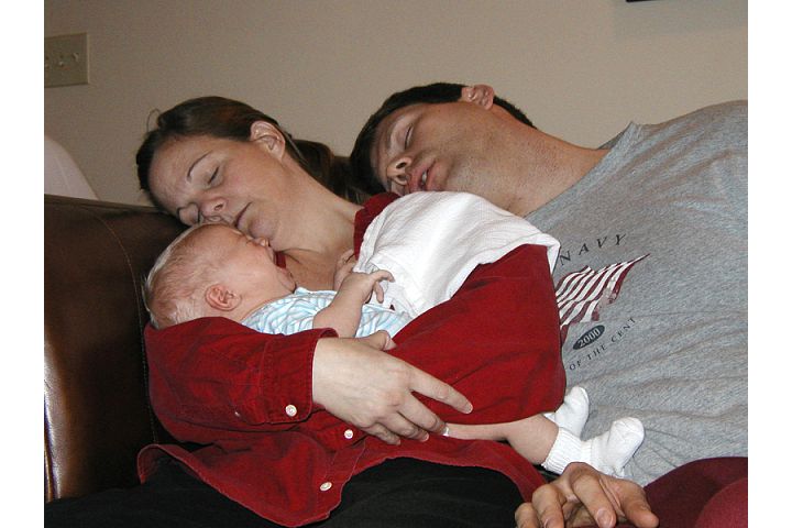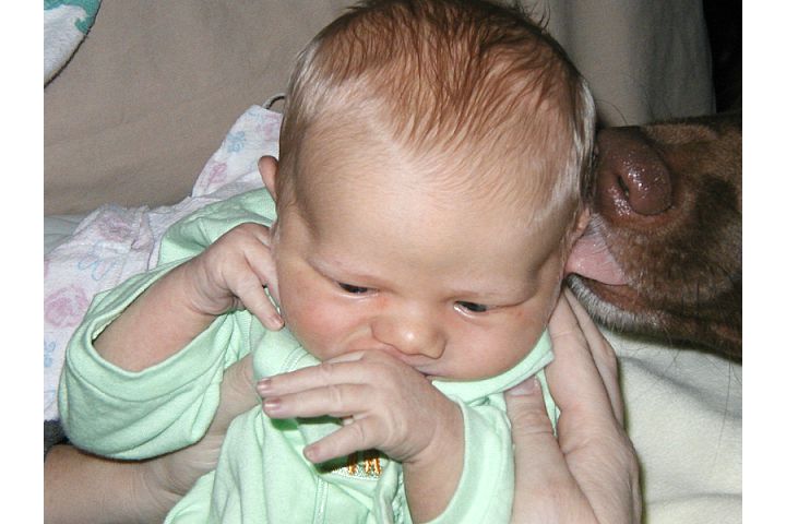 In my search for the exhausted picture, I found another picture of newborn Joe. Looking more closely at the second picture, I noticed our dog, Cherokee. I think Cherokee liked the babies, too. Actually, Cherokee still loves the boys, especially when the boys are eating.