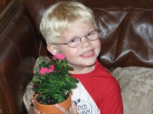 As is often the case, when one child gets something the other child makes a similar request. Joe asked if I could take him to the grocery store one day, so he could buy flowers. Normally, I would have brushed off his request, if only to discourage the “he has one – I want one” mentality. However, Joe added, “I can use money from my piggy bank to buy the flowers.” Smart kid.