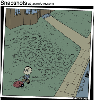 He smiled and said, “Join a gym.” Then he started walking again, and I started the mower and resumed my obsession.
