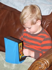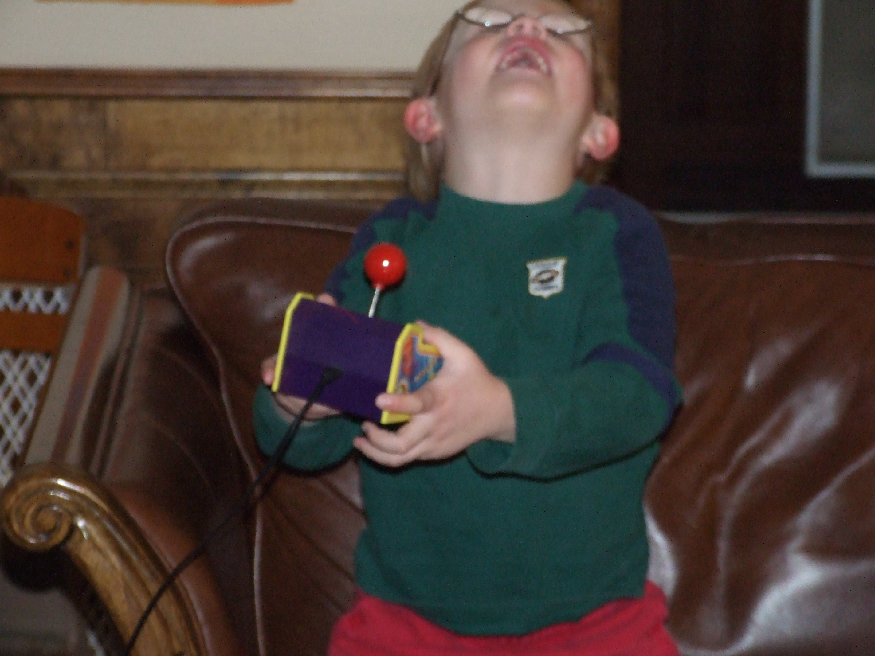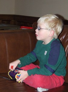 Watching the boys become both excited and frustrated at the same time, brought back so many funny memories for me. Joe is jumping up when he makes a mistake, as well as jumping up when he gets a high score. He smiles and throws his head back when he dodges a car, and he smiles and throws his head back when he gets eaten or blown to bits. His mouth and his lips move, mirroring his hand on the joystick. And, I watch as his feet twitch and move along with the various things on the screen.